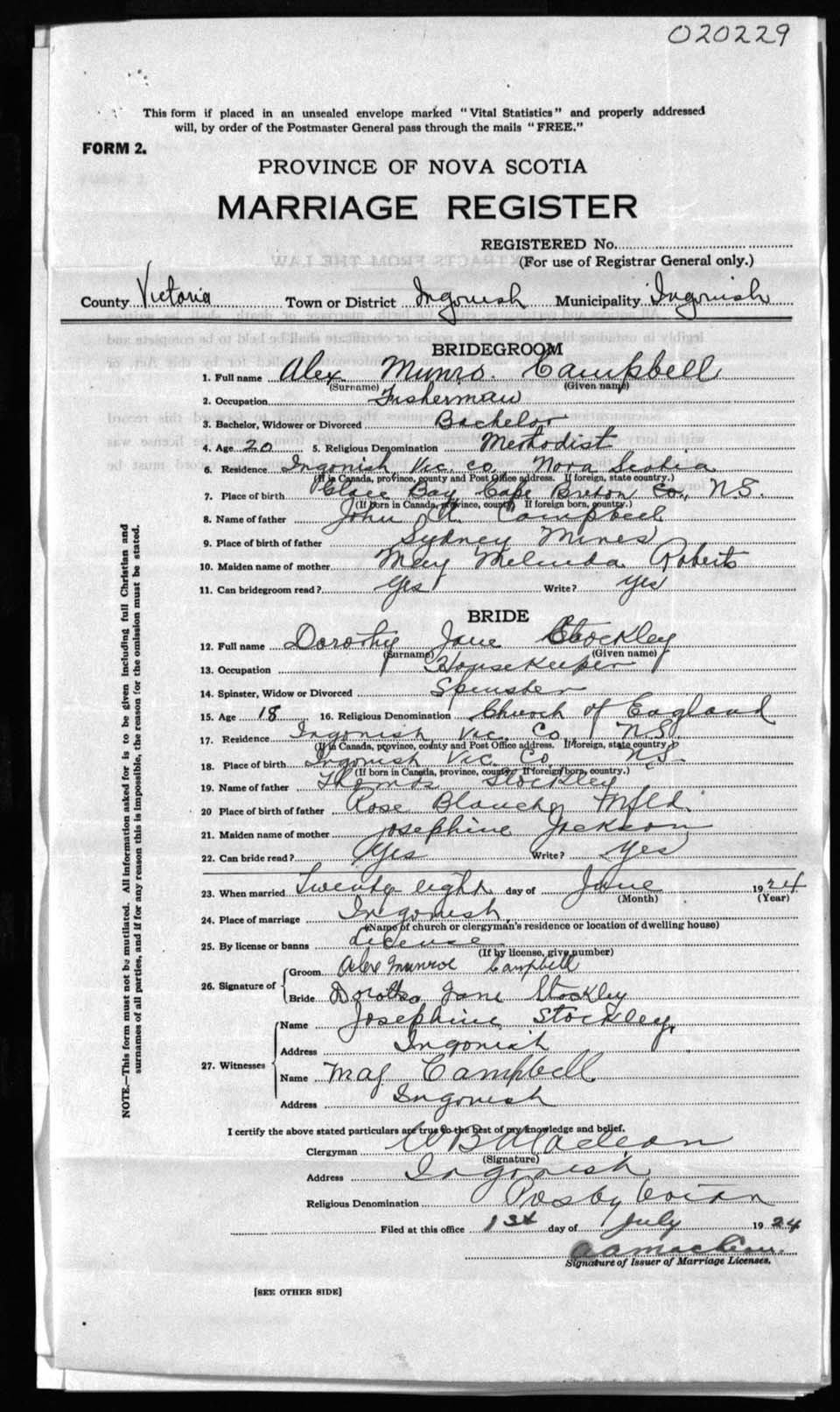 Registration: Year: 1924 number: 20229