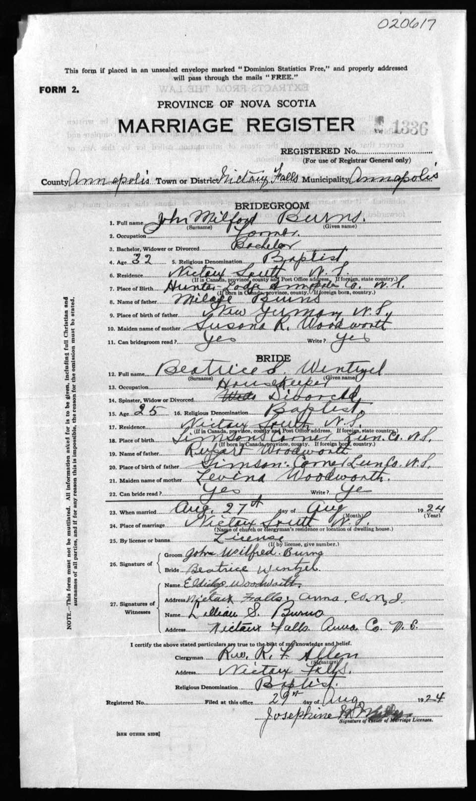 Registration: Year: 1924 number: 20617