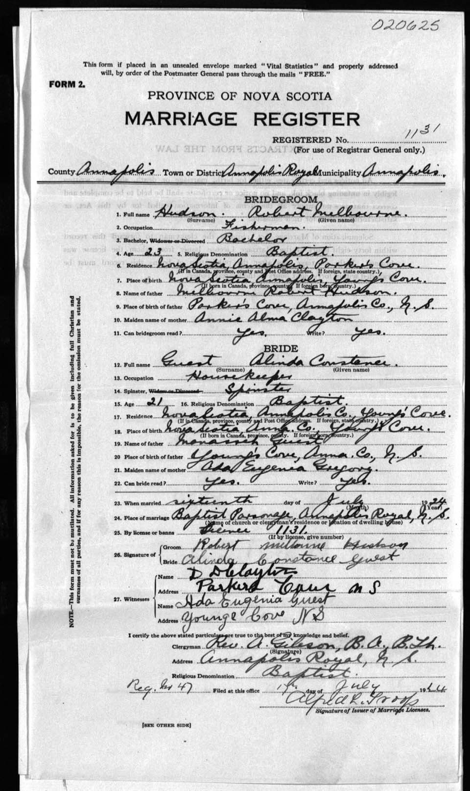 Registration: Year: 1924 number: 20625