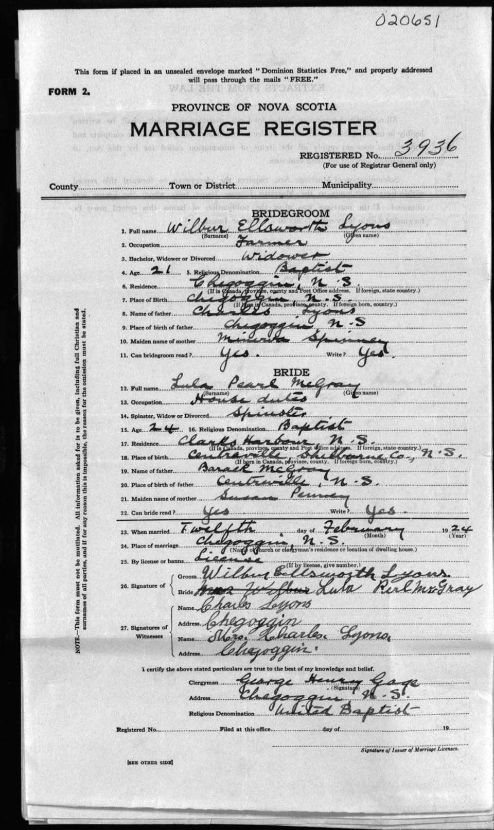 Registration: Year: 1924 number: 20651