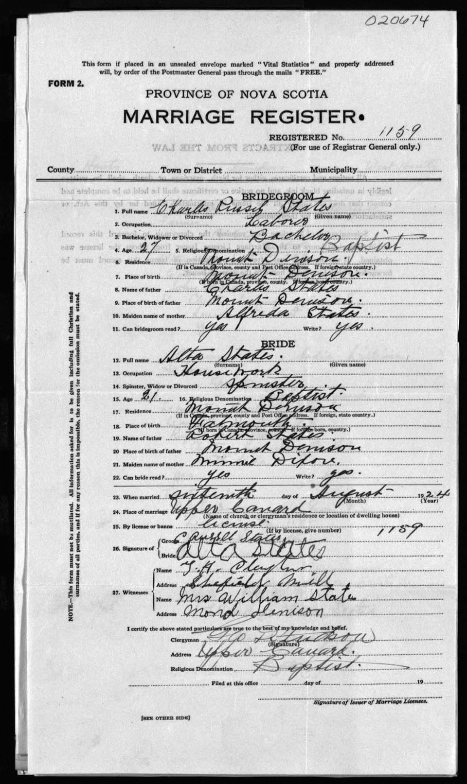 Registration: Year: 1924 number: 20674