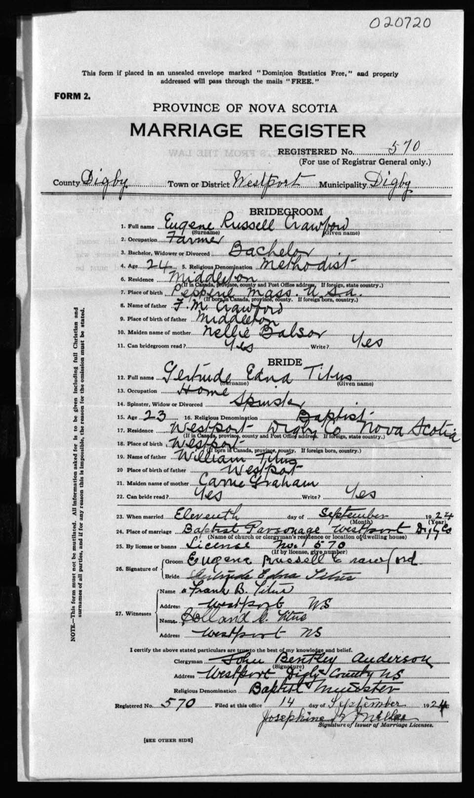 Registration: Year: 1924 number: 20720