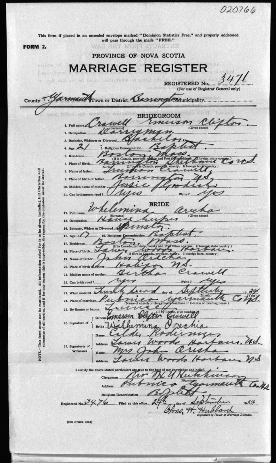 Registration: Year: 1924 number: 20766