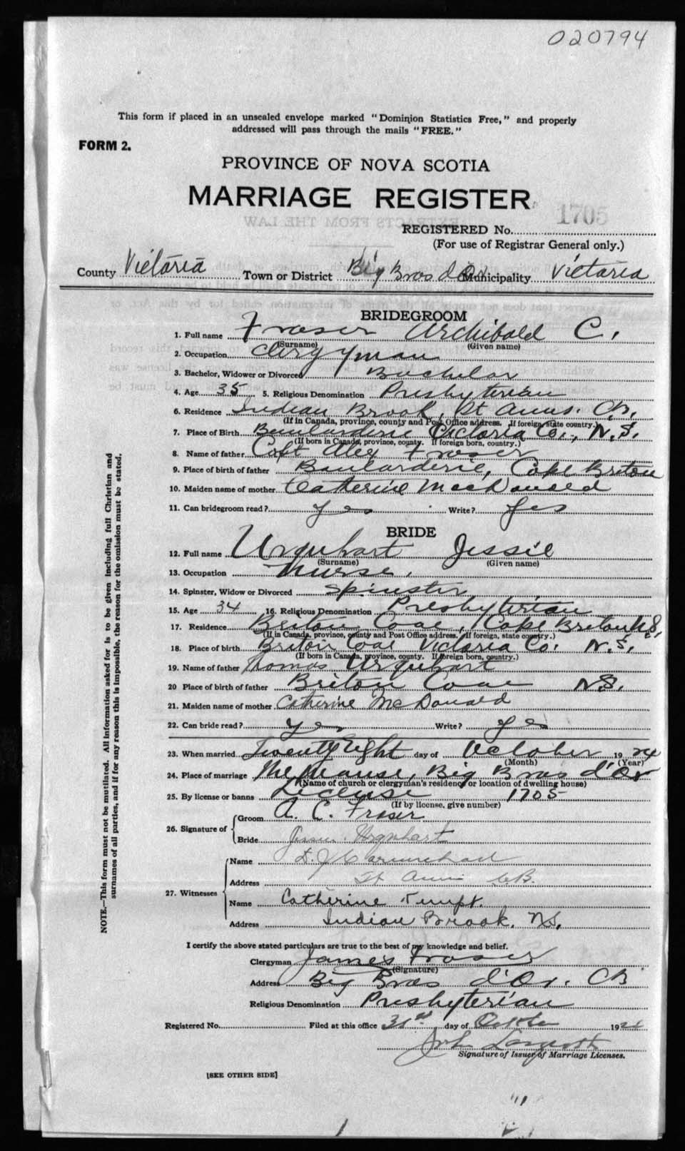 Registration: Year: 1924 number: 20794