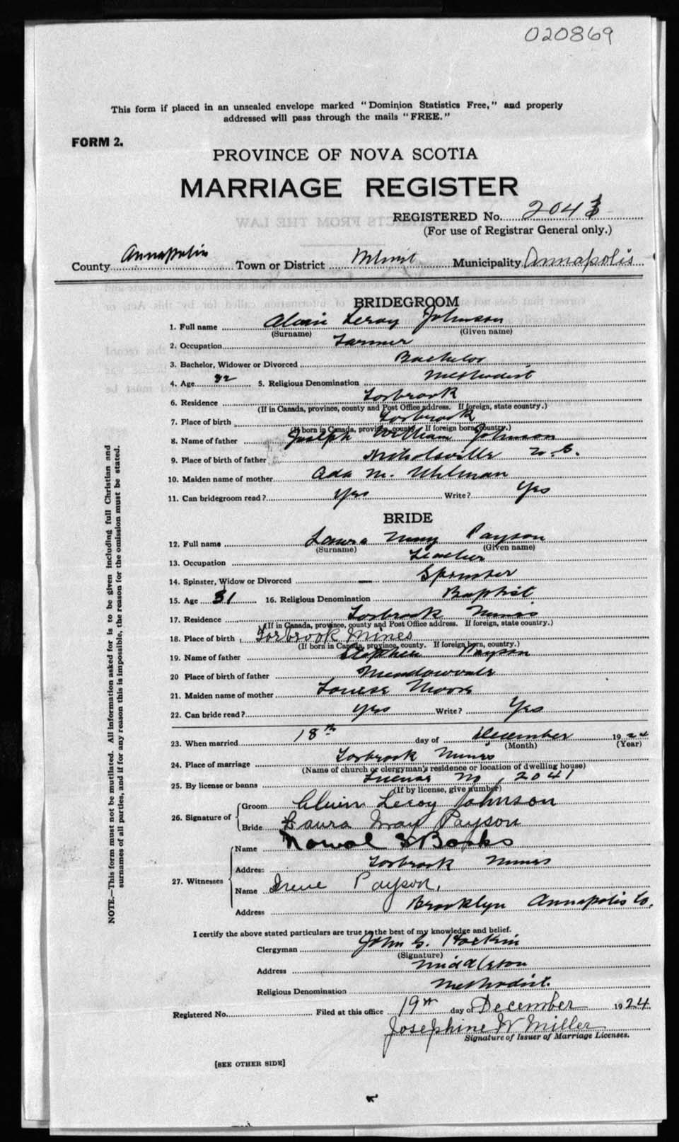 Registration: Year: 1924 number: 20869