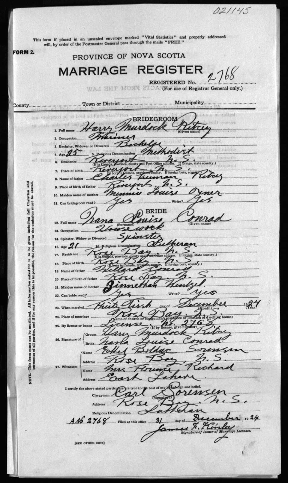 Registration: Year: 1924 number: 21145