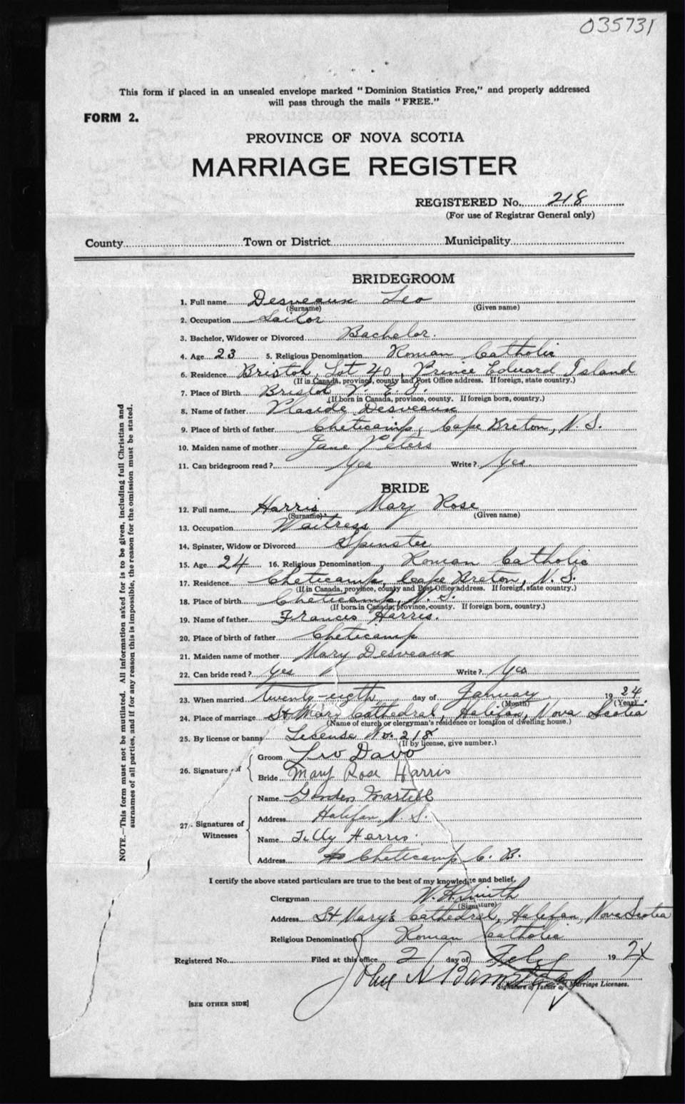 Registration: Year: 1924 number: 35731