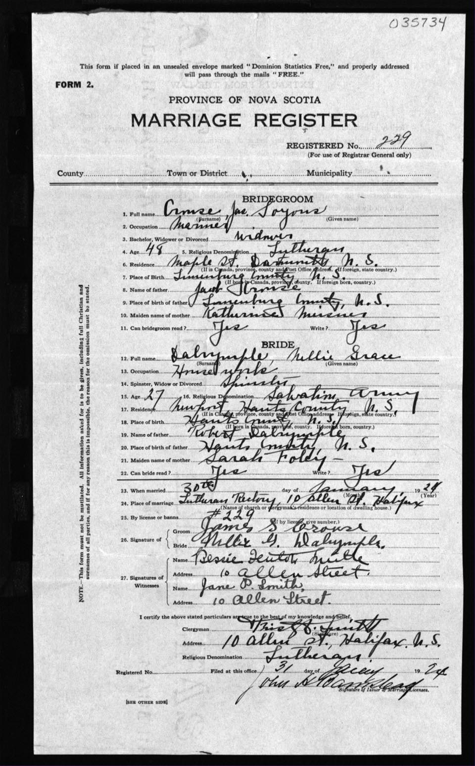 Registration: Year: 1924 number: 35734