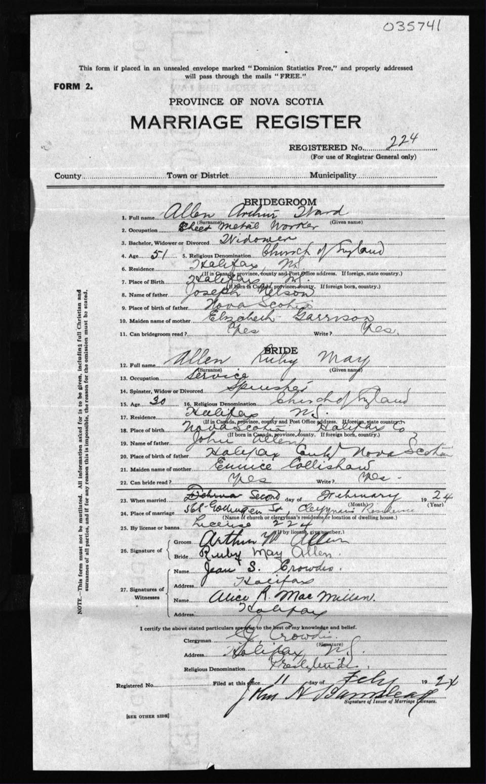 Registration: Year: 1924 number: 35741