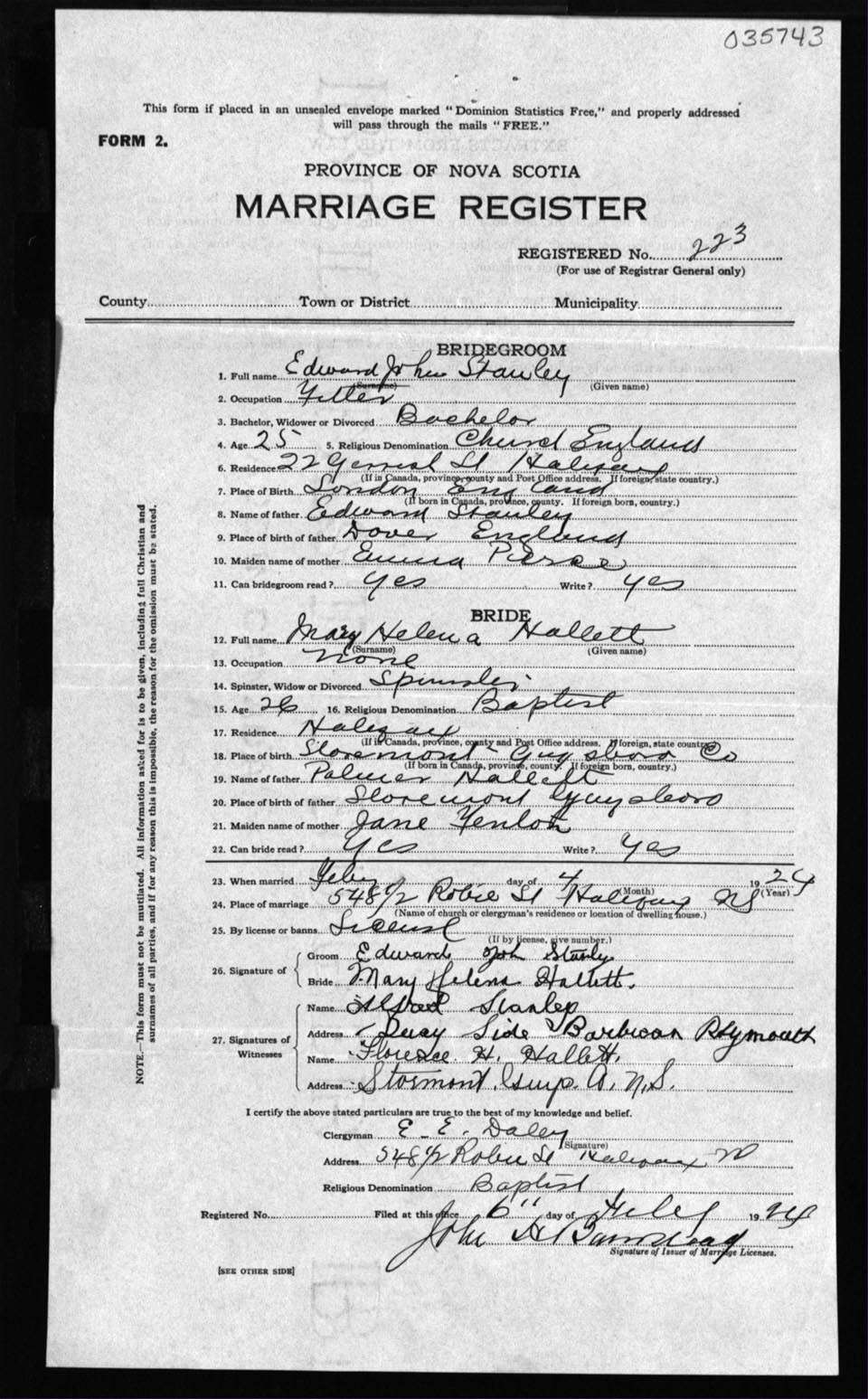 Registration: Year: 1924 number: 35743