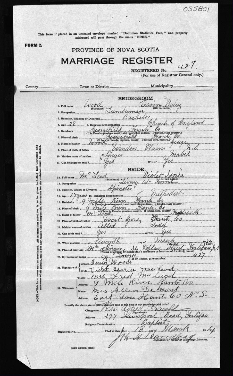 Registration: Year: 1924 number: 35801