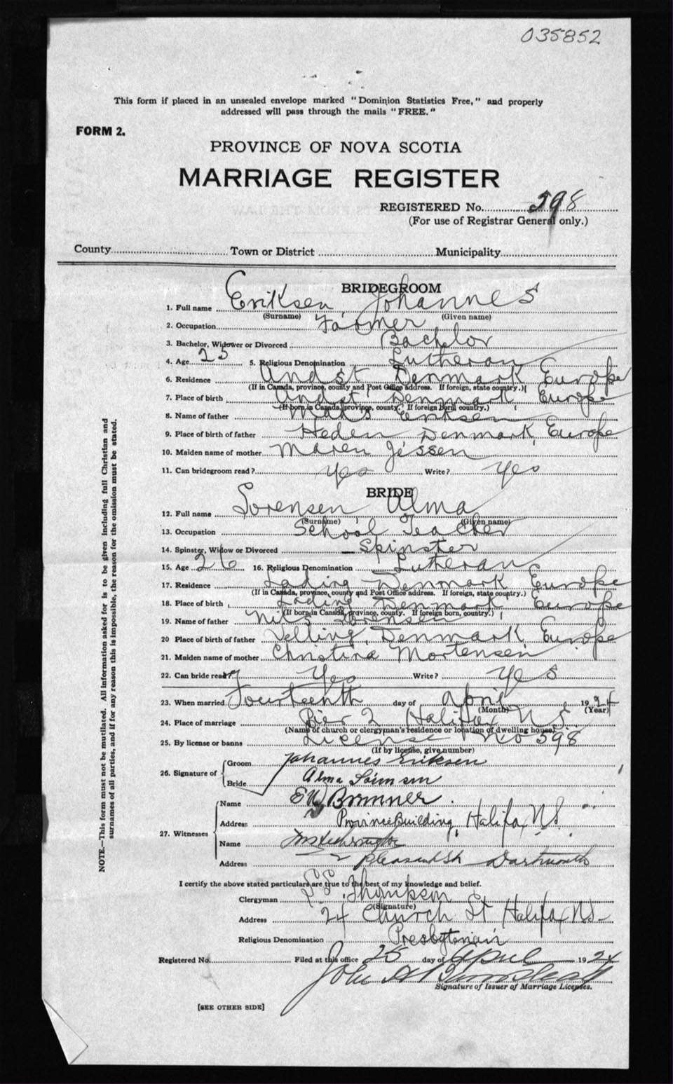 Registration: Year: 1924 number: 35852