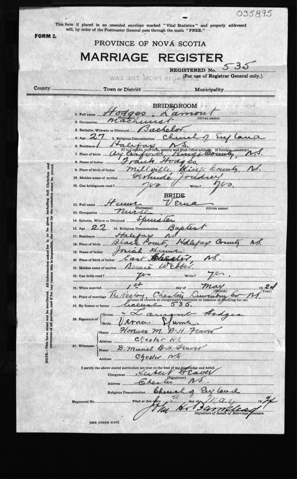 Registration: Year: 1924 number: 35895
