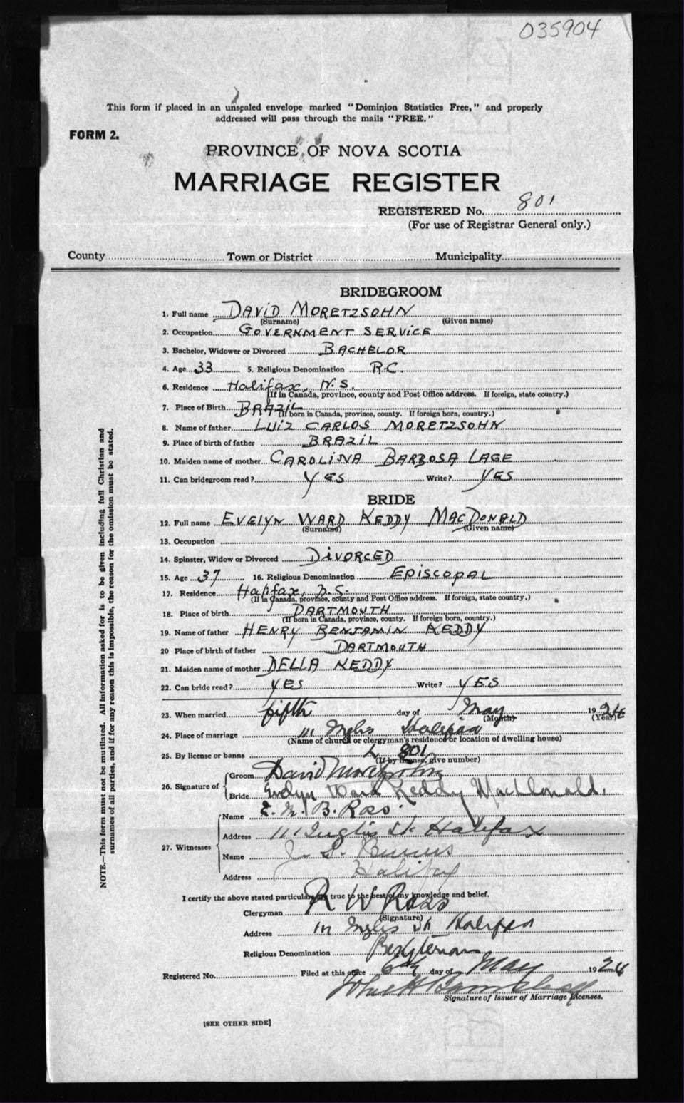 Registration: Year: 1924 number: 35904