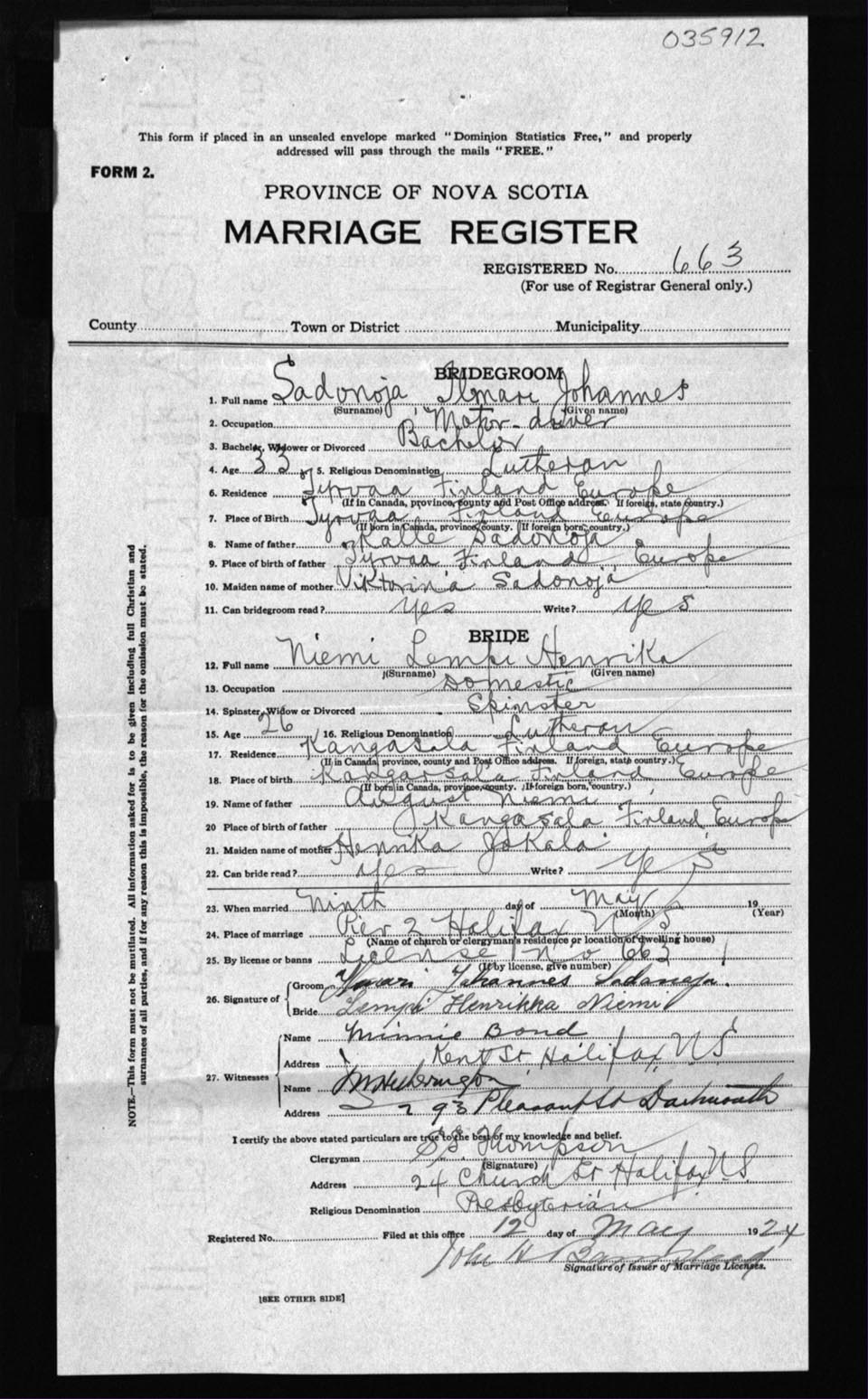 Registration: Year: 1924 number: 35912