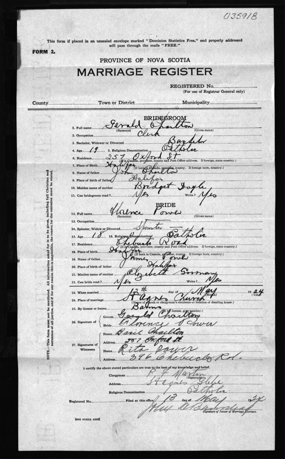 Registration: Year: 1924 number: 35918