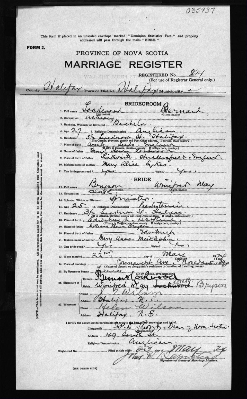 Registration: Year: 1924 number: 35937