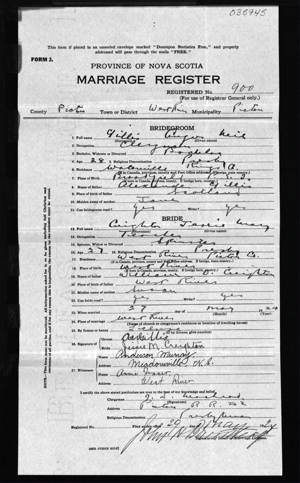 Registration: Year: 1924 number: 35945