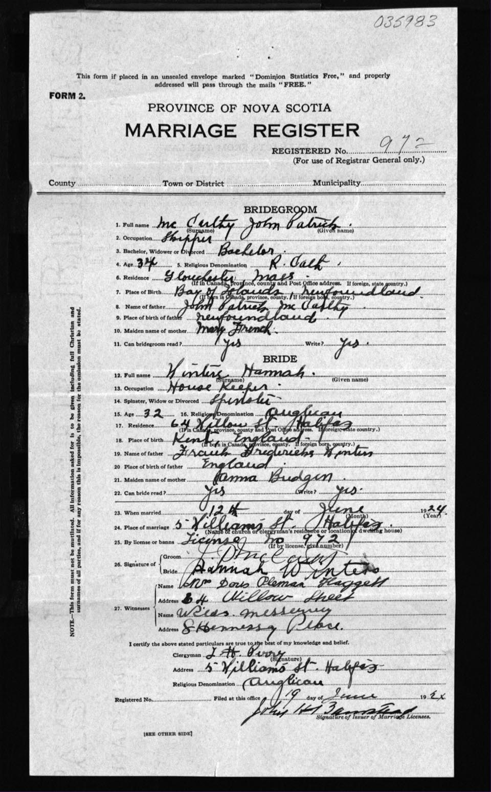 Registration: Year: 1924 number: 35983