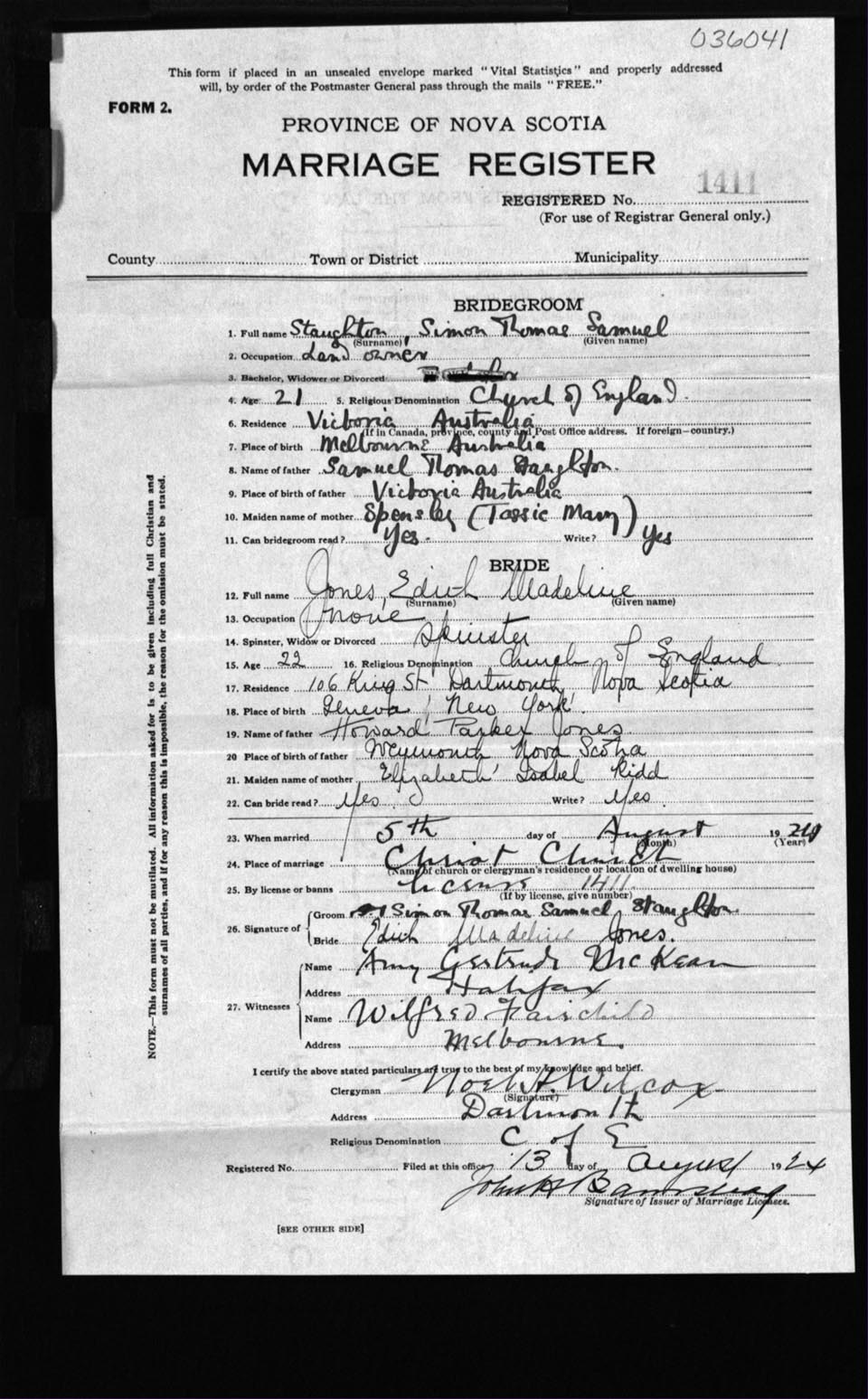 Registration: Year: 1924 number: 3641