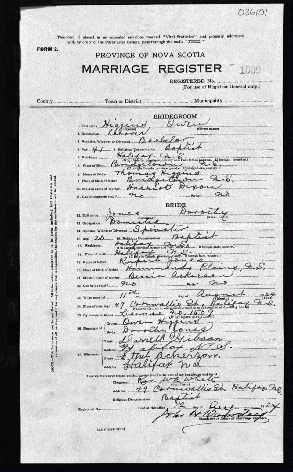 Registration: Year: 1924 number: 36101