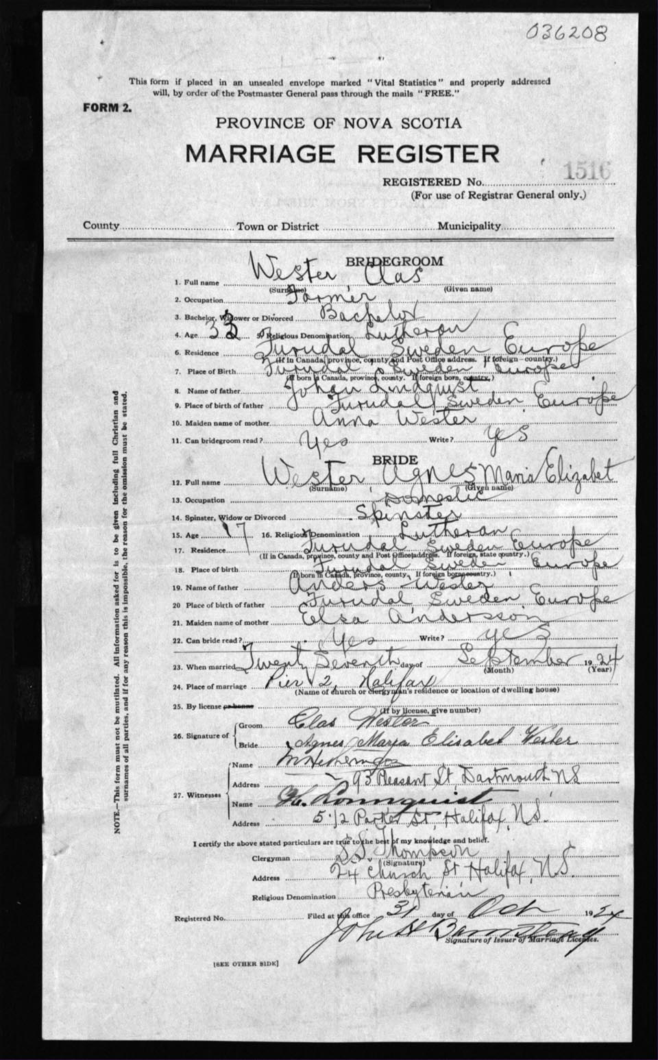 Registration: Year: 1924 number: 36208