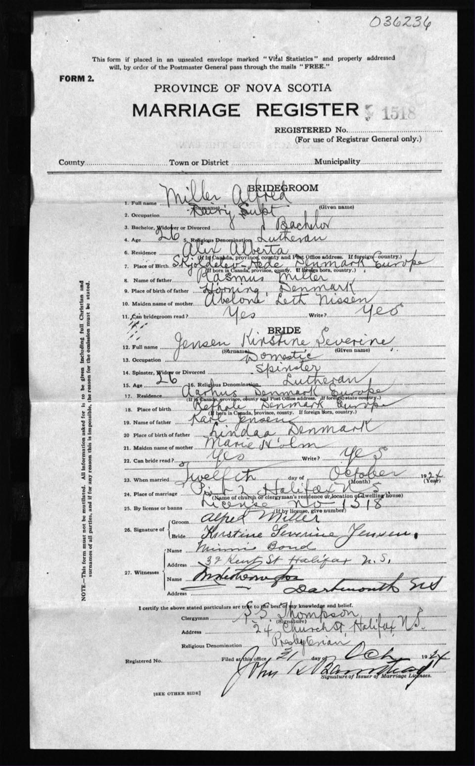 Registration: Year: 1924 number: 36236