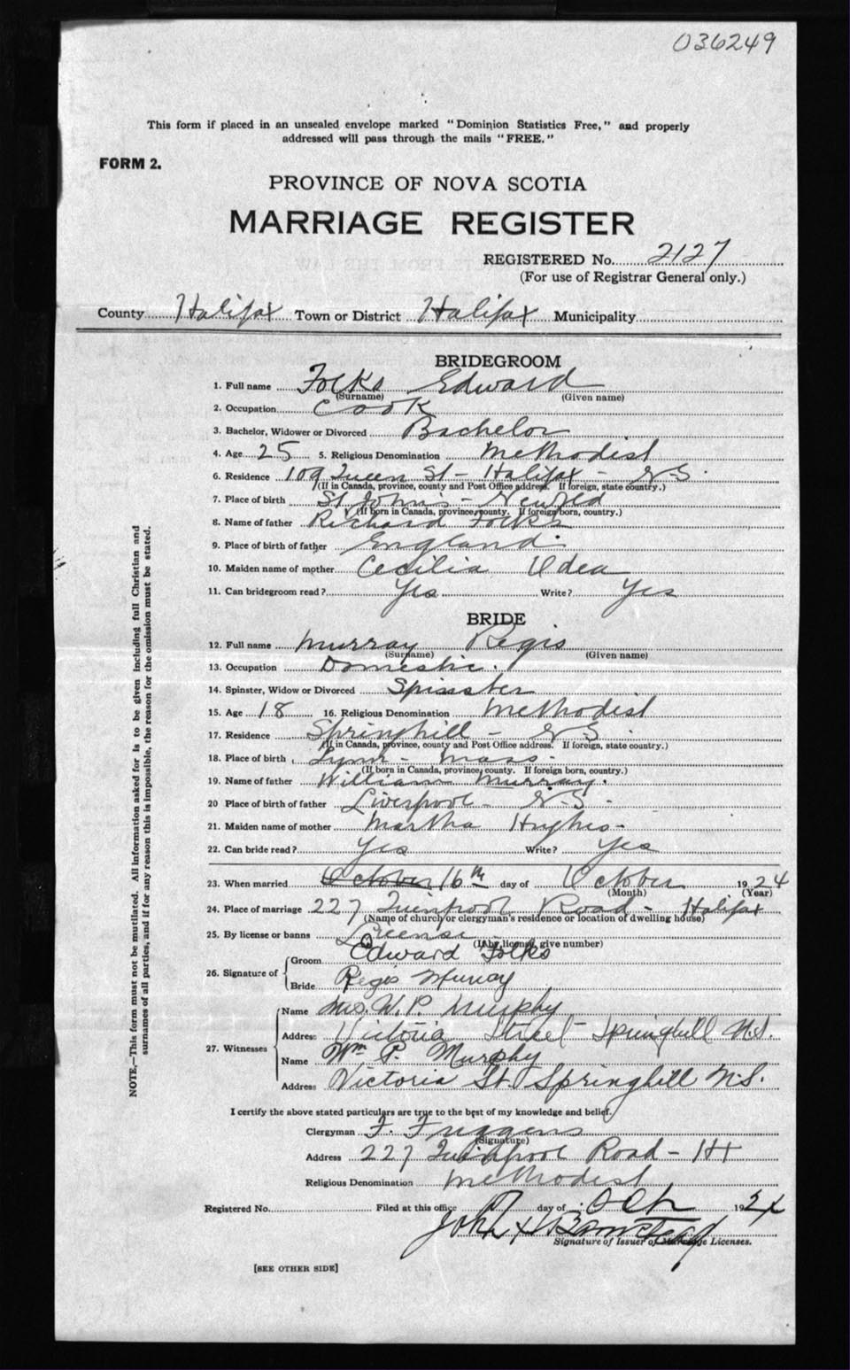 Registration: Year: 1924 number: 36249