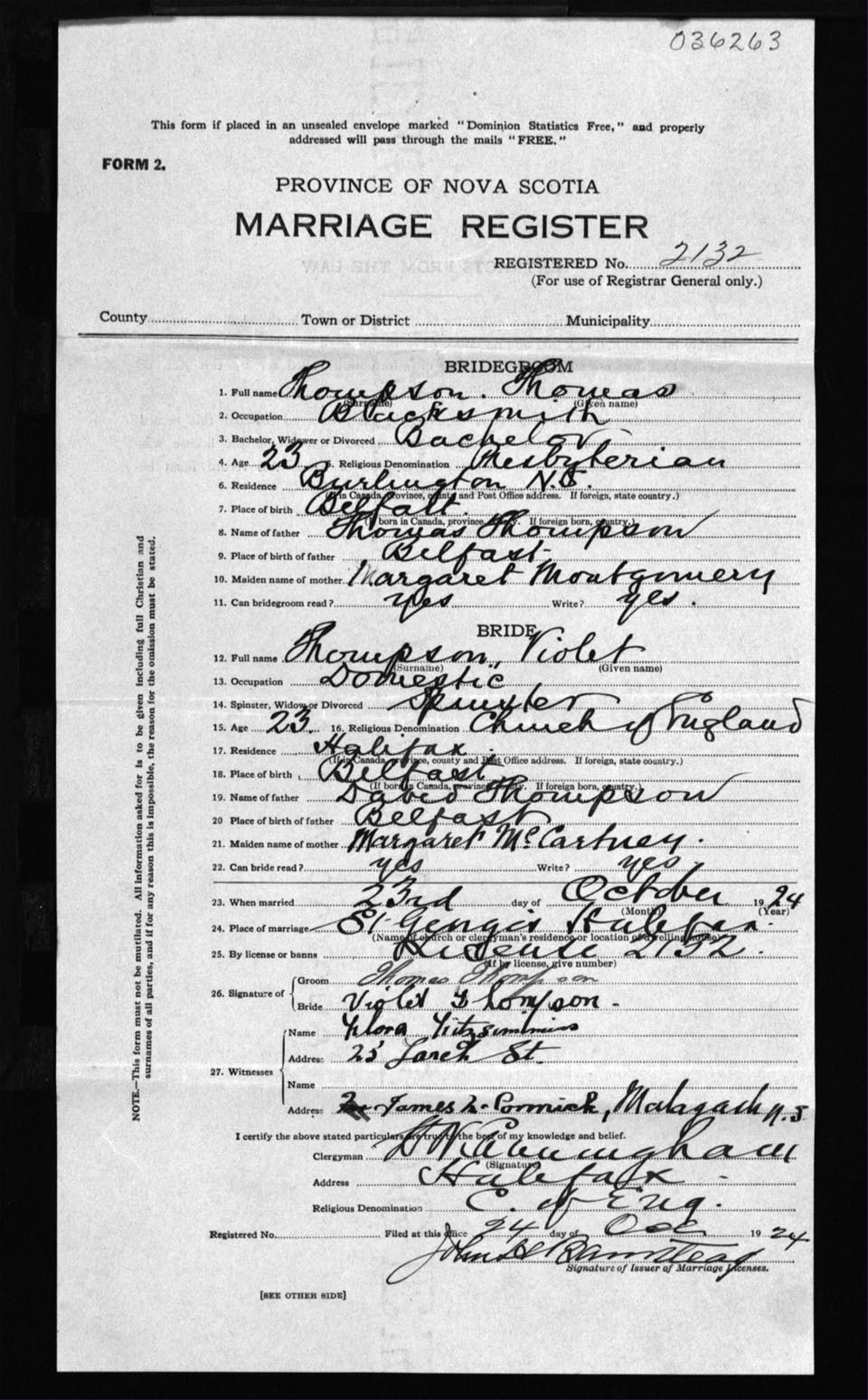 Registration: Year: 1924 number: 36263