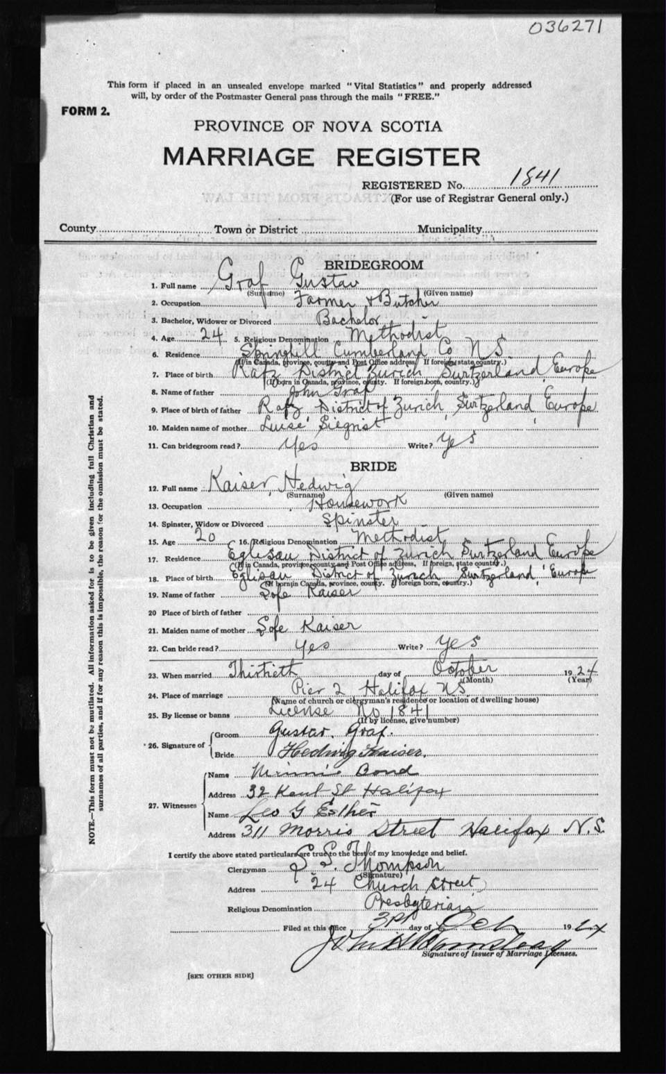 Registration: Year: 1924 number: 36271
