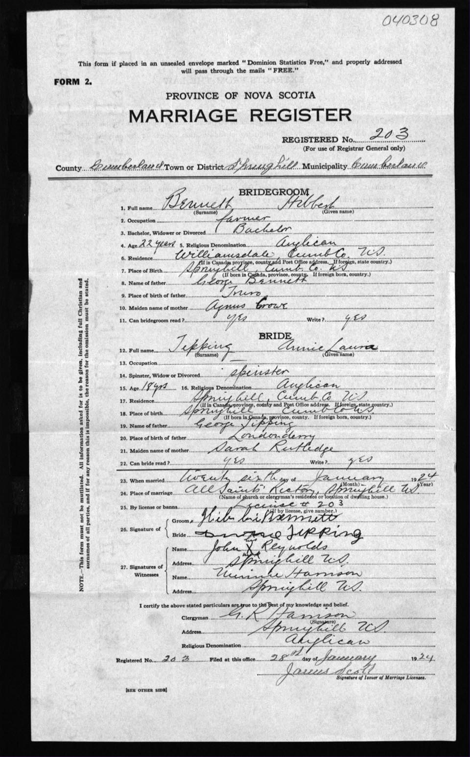 Registration: Year: 1924 number: 40308