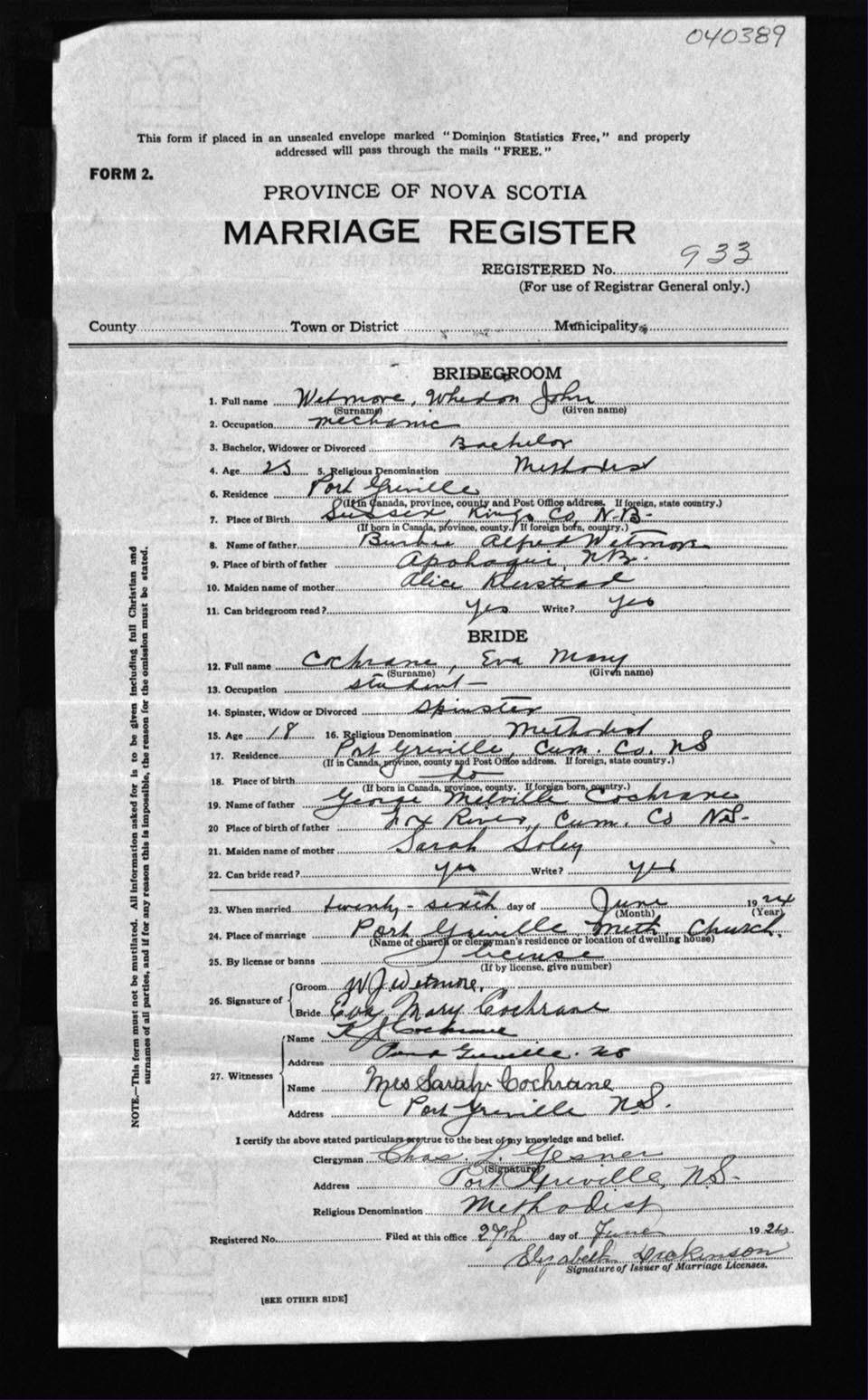 Registration: Year: 1924 number: 40389