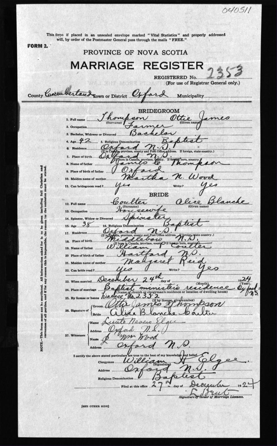 Registration: Year: 1924 number: 40511