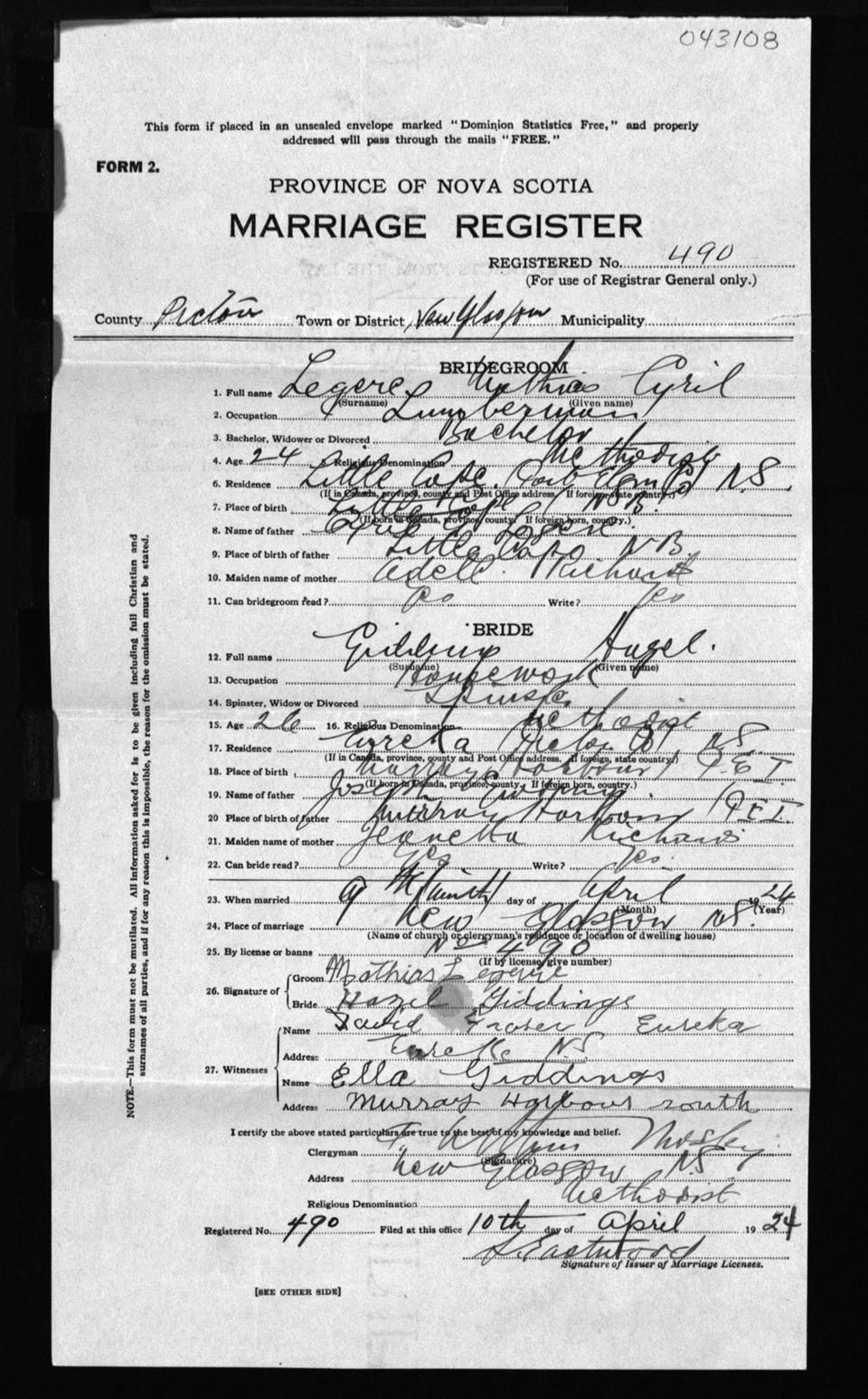 Registration: Year: 1924 number: 43108