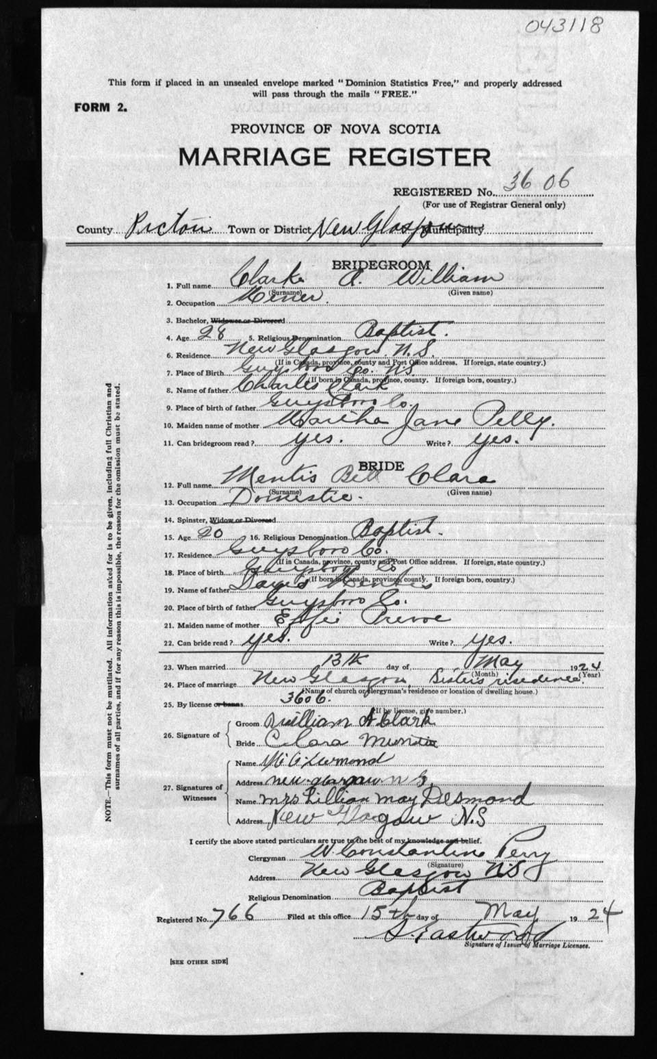 Registration: Year: 1924 number: 43118