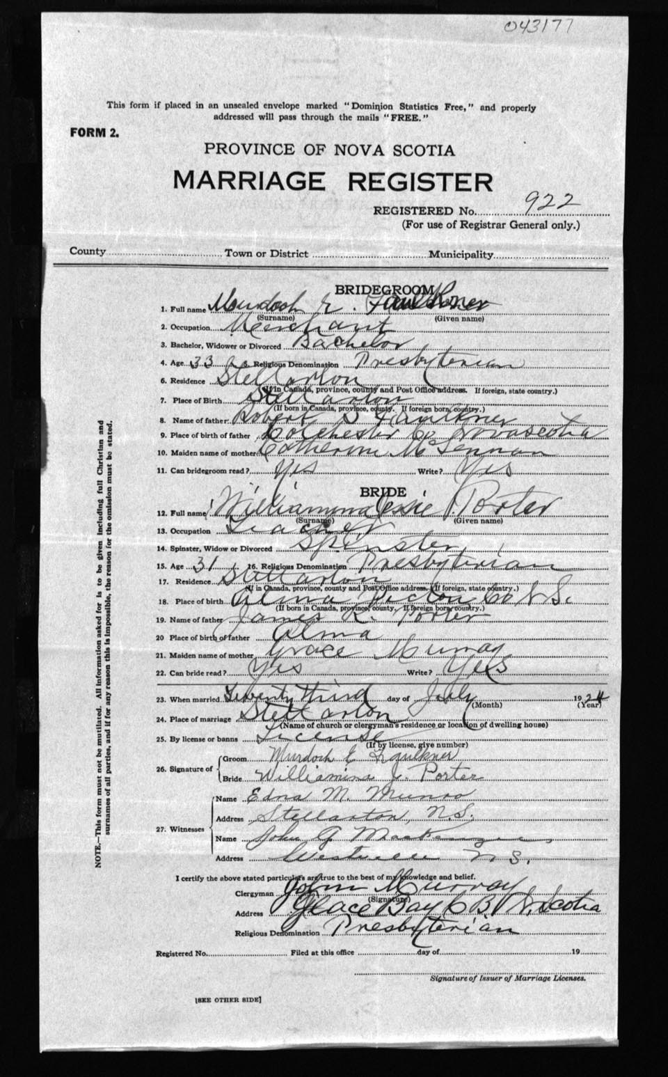 Registration: Year: 1924 number: 43177