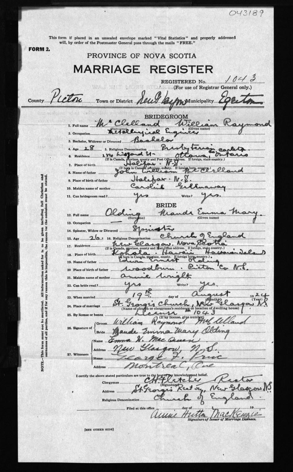 Registration: Year: 1924 number: 43189