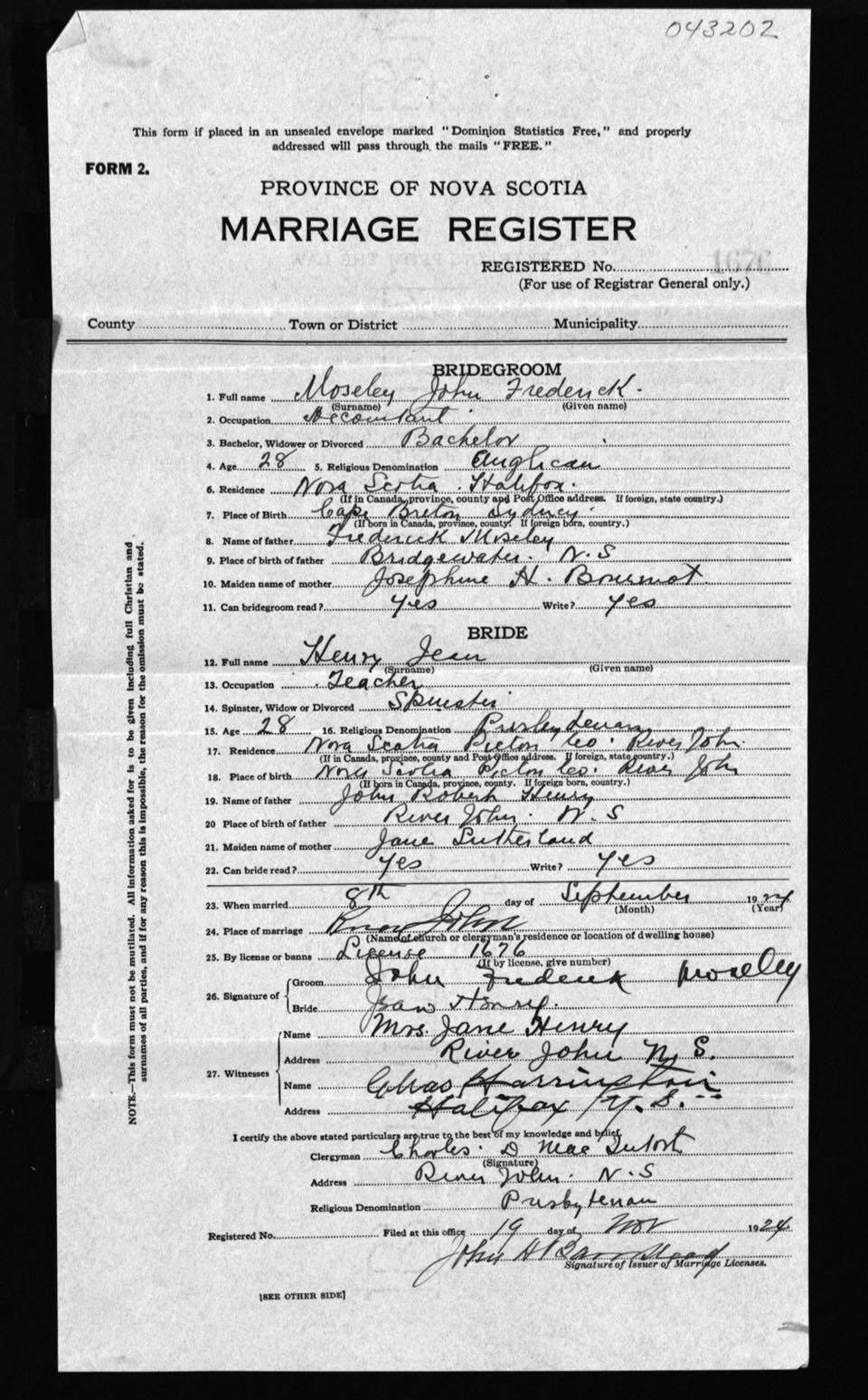Registration: Year: 1924 number: 43202