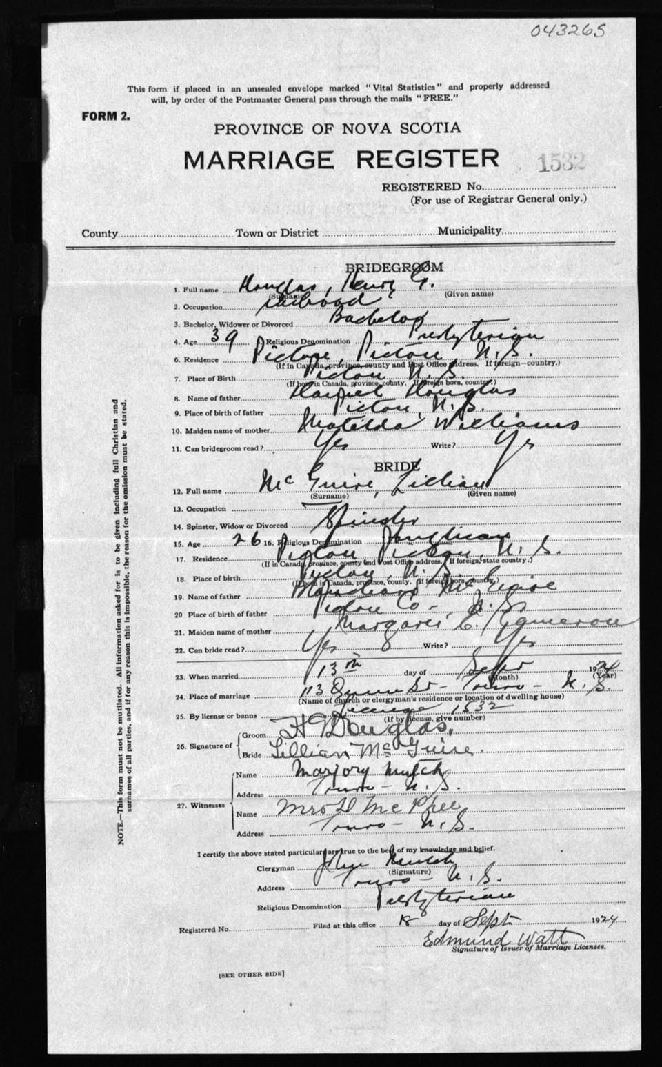 Registration: Year: 1924 number: 43265