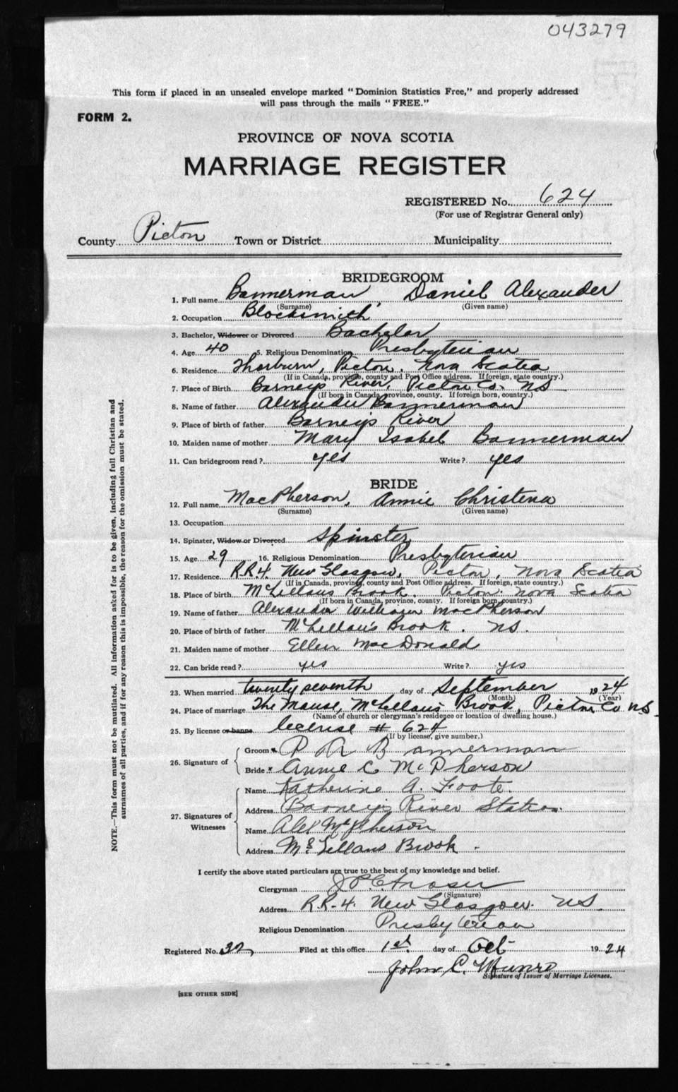 Registration: Year: 1924 number: 43279