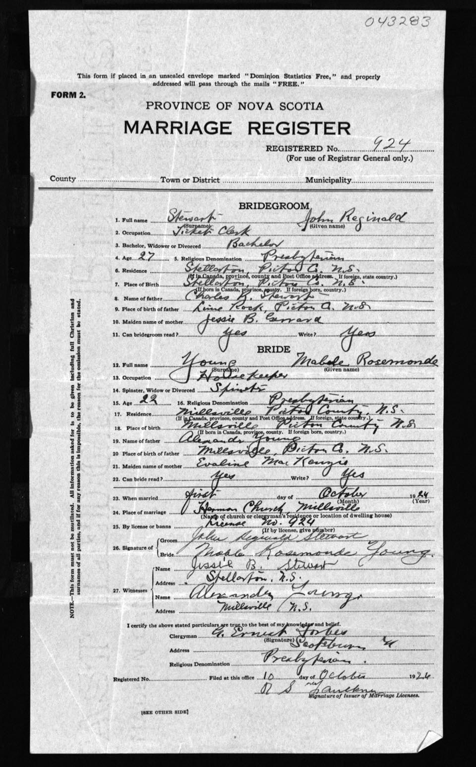 Registration: Year: 1924 number: 43283