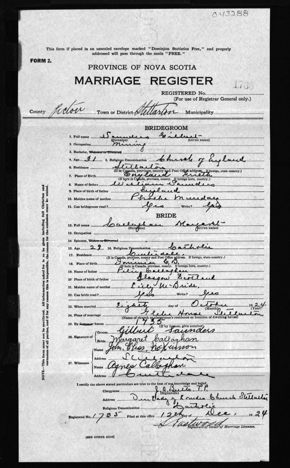 Registration: Year: 1924 number: 43288