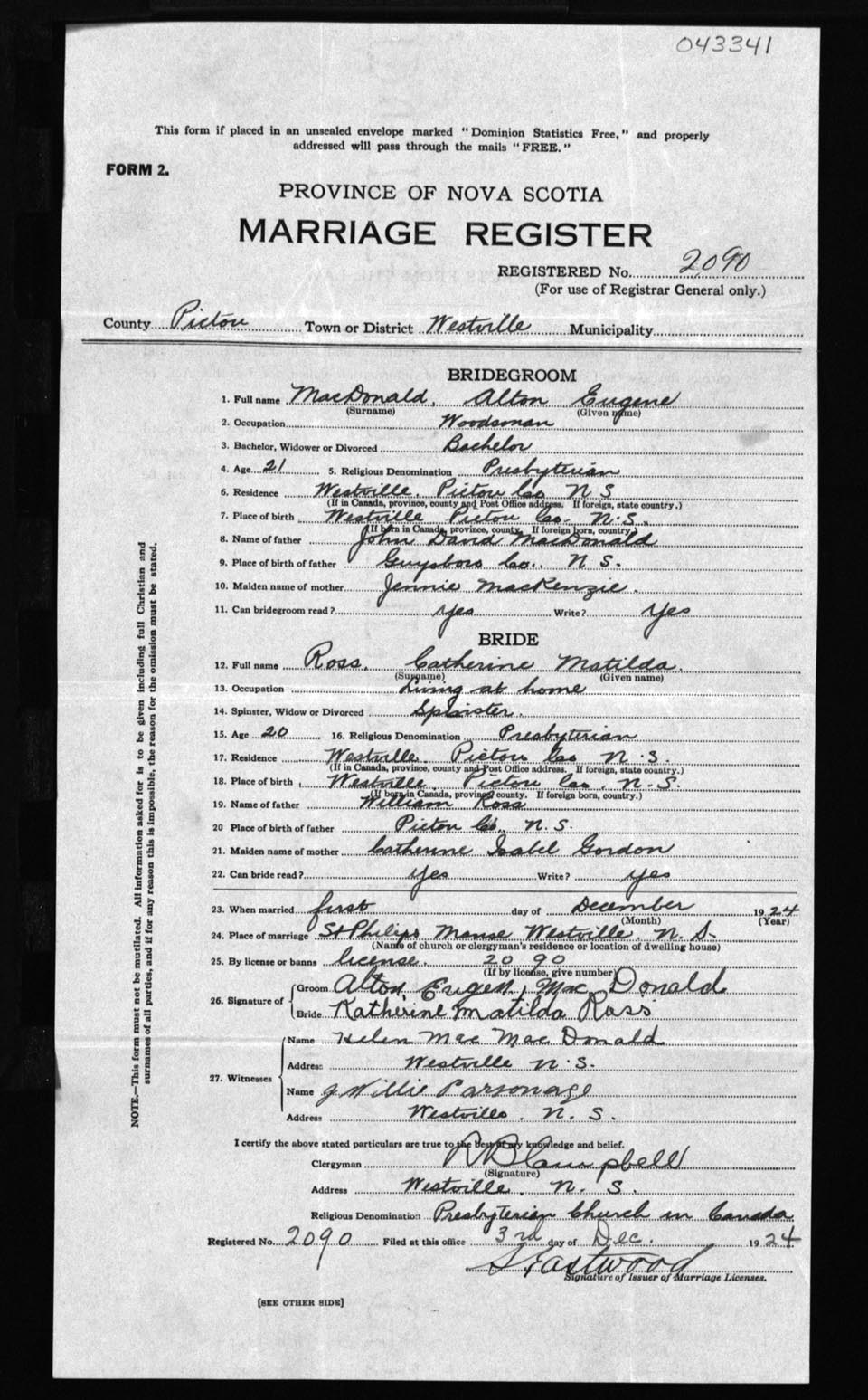 Registration: Year: 1924 number: 43341