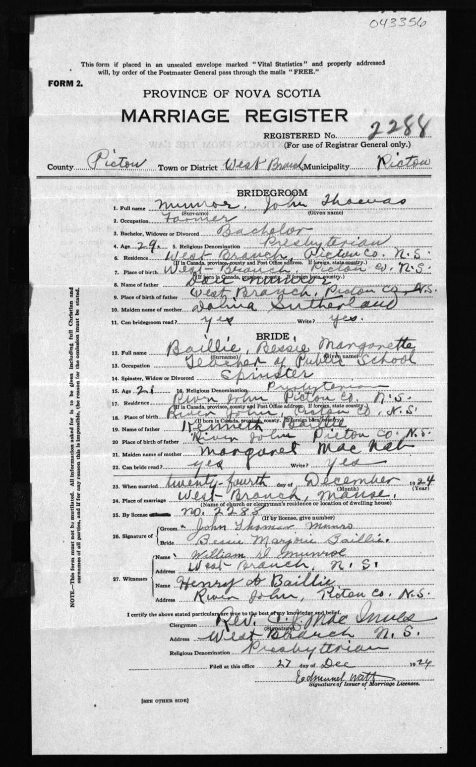 Registration: Year: 1924 number: 43356