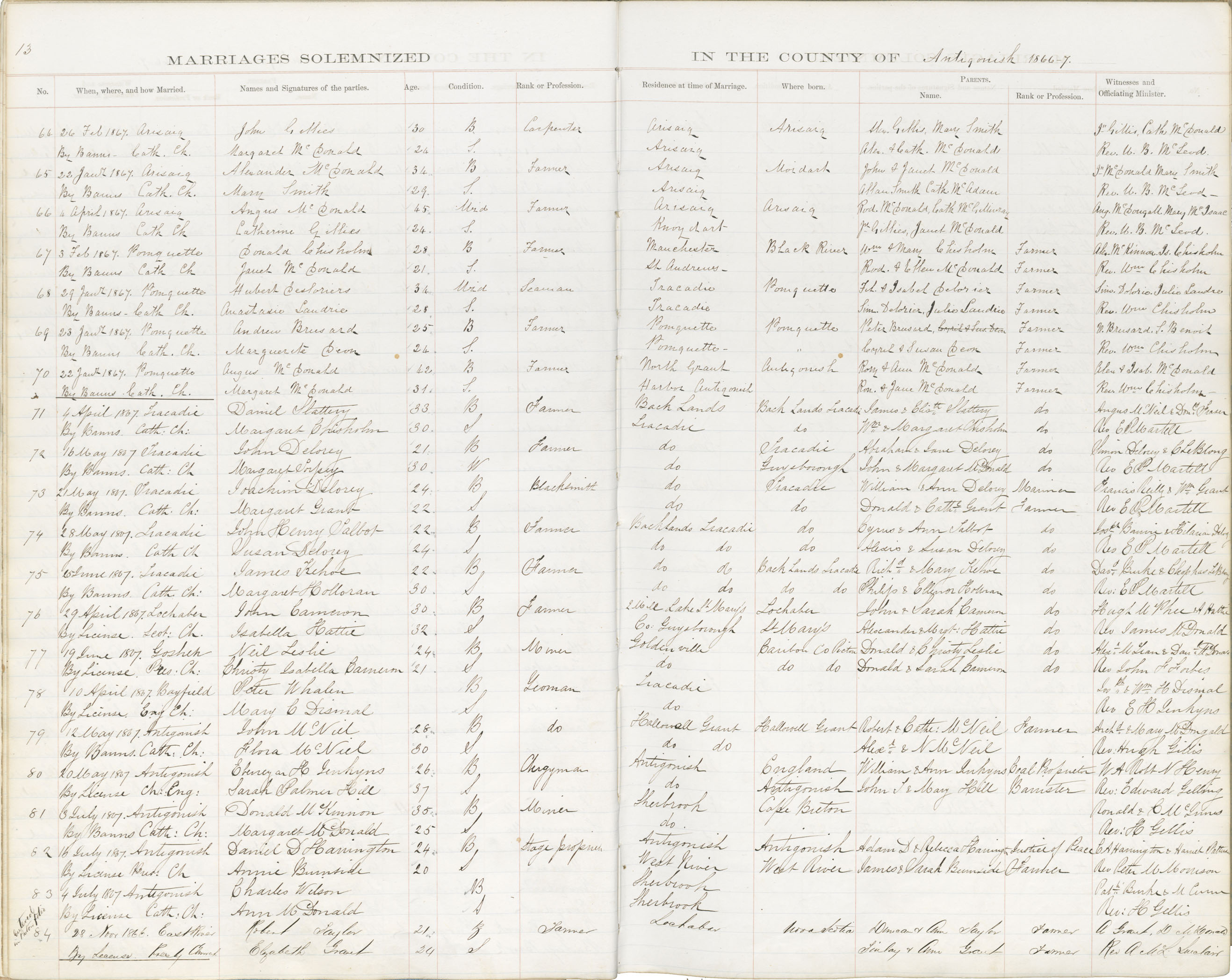 Registration: Year: 1867 book: 1803 page: 13 number: 64