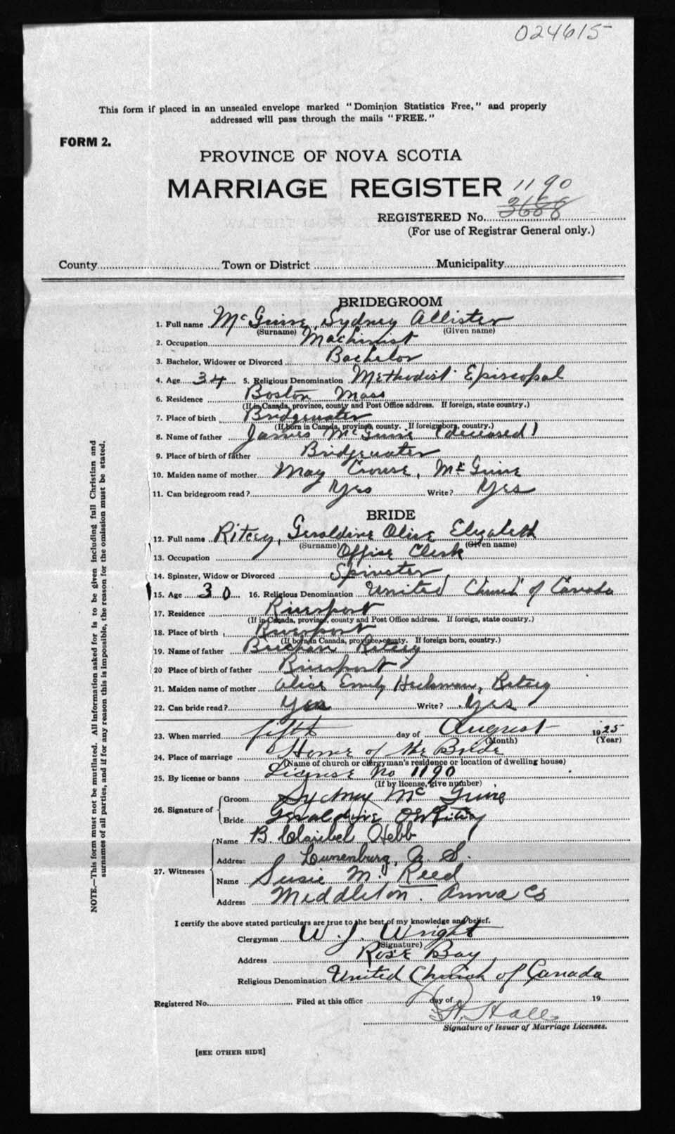 Registration: Year: 1925 number: 24615