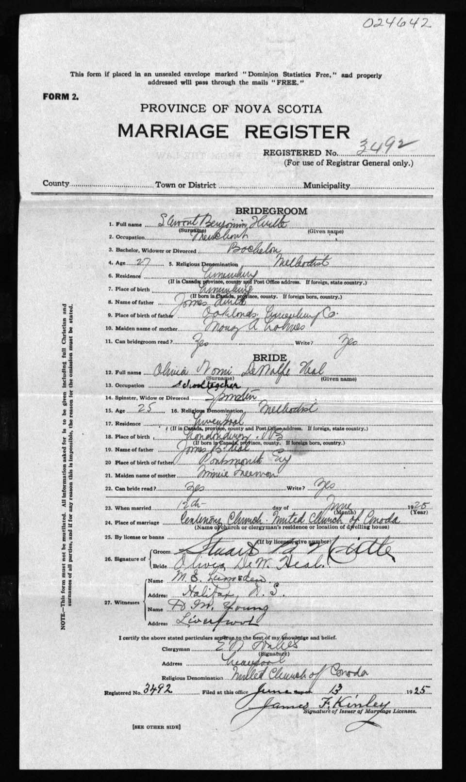 Registration: Year: 1925 number: 24642