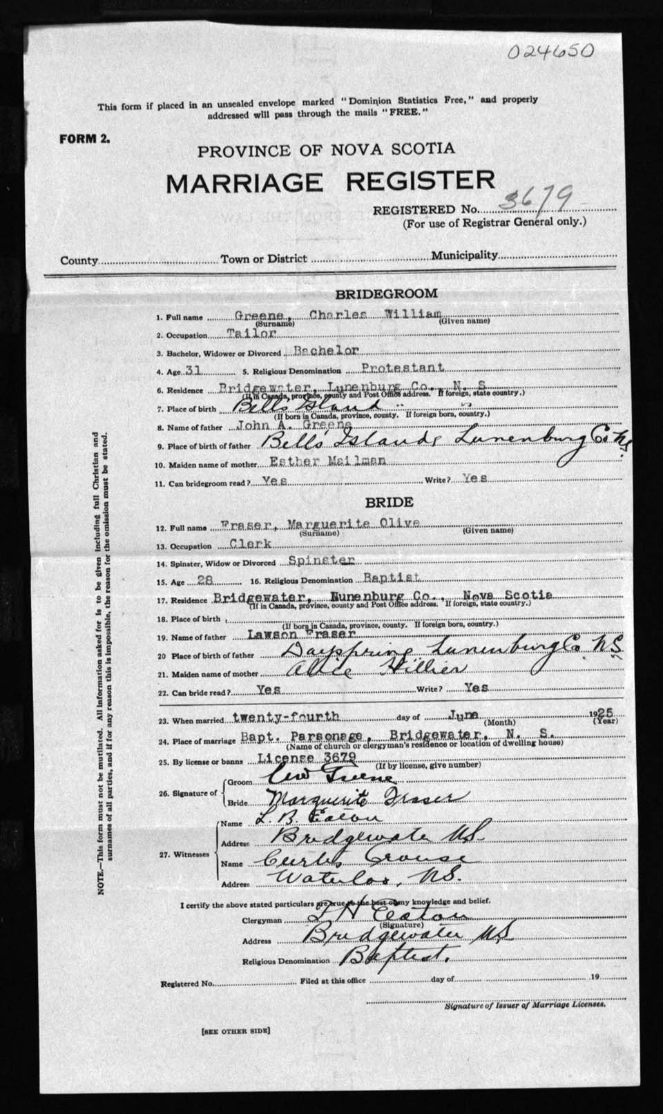 Registration: Year: 1925 number: 24650