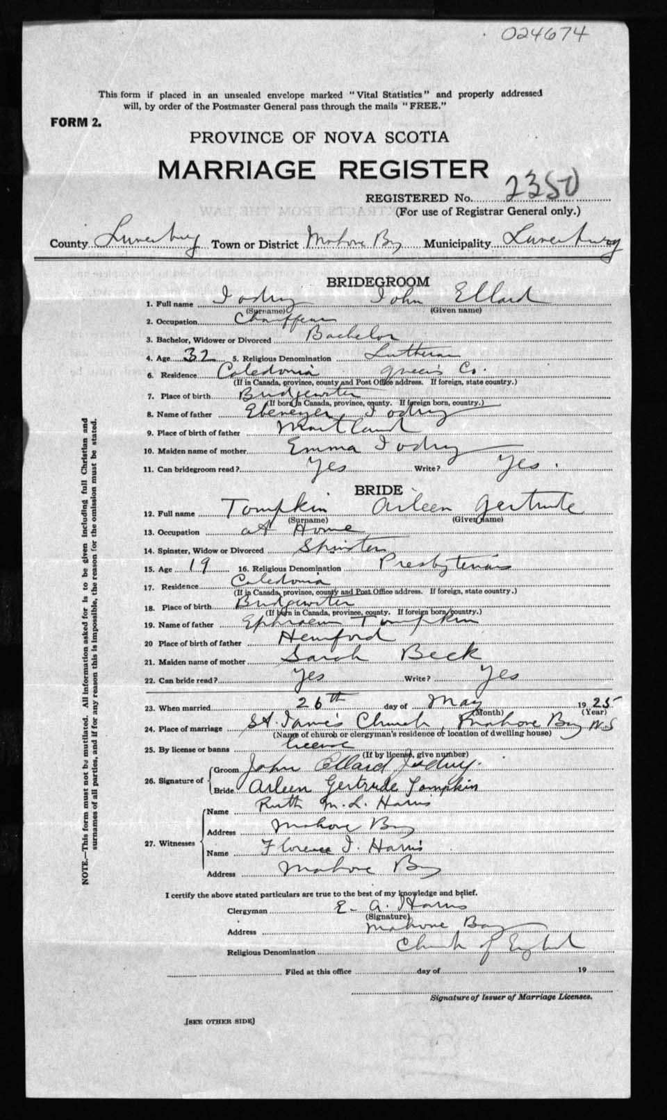 Registration: Year: 1925 number: 24674
