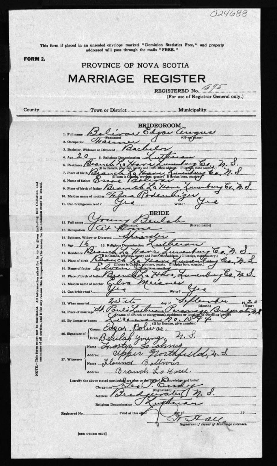Registration: Year: 1925 number: 24688